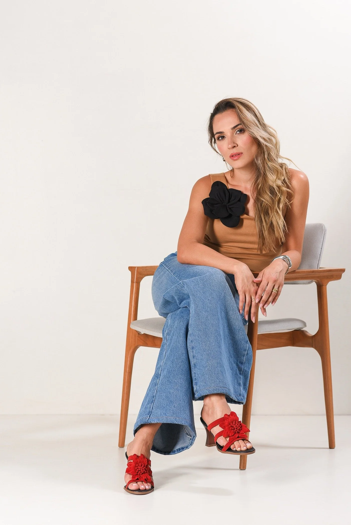 Graceful flower embroidered in a modern heritage clog with comfort and femininity.
